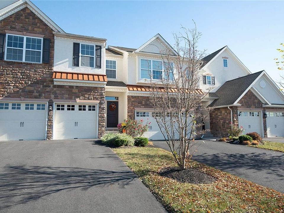 PRISTINE, very well maintained 3 bedroom, 2.5 bath townhome in the East Penn SD awaits its buyer; prime location, situated on a Cul de Sac is a definite amenity! As you enter from the private covered porch into the lovely foyer, you are greeted by gleaming wood floors & an Open Concept floor plan. A chef will feel very comfortable in his/her element as the kitchen boasts of ample beautiful wood cabinetry, pantry, double sink, granite counters, breakfast bar, tile backsplash, efficient gas cooking, & stainless steel appliances. A gas fireplace separates the dining area from the spacious family room, perfect for those chilly nights. Upstairs has a nice size carpeted loft, presently an office area but has many uses, as you ascend to that level. The spacious Master Suite has a trey ceiling with fan, standing shower, soaking tub, & beautiful tile accents. 2 other bedrooms & a laundry room completes the 2nd level. Upgrades include a new Central A/C (2023) fire sprinkler/security systems, ceiling fans, tilt windows, 2 car garage, large driveway, new washer, & home has been freshly painted (2024) in a neutral palette. Full basement has ample storage, ready to be finished if more living space is desired. No worries with snow removal/landscaping, the HOA fee covers such which makes easy maintenance free living. All appliances remain! Close to major highways for easy commute, as well as shopping, schools, & medical facilities. This is LUXURY living at its best. A GEM TO BE SEEN!
