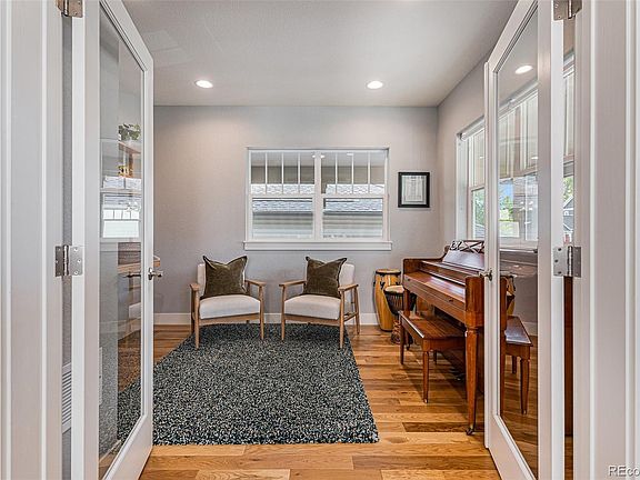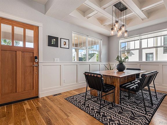 Welcome Home to this 2018 custom built, Denver Square with 4 beds, 4 baths, and an ingenious layout for easy living. The dreamy backyard is an oasis in the heart of Berkeley, one of Denver’s most sought after districts. This home has all the fine details of millwork, chair railing, box beams, and the perfect light... the home flows impeccably! Upon entry you will see an office or a music room with glass French doors. The dining room has a spectacular box beam ceiling, and millwork on the walls giving it that classic Craftsman feel. Bask in the sunny living room with an elegant Craftsman fireplace & delicate tilework. You will notice immediately, that the entire back of the home is windows: door to mudroom and a huge sliding glass door merging the interior with the outdoors. The kitchen is bright with custom cabinets, white quartz counters and crisp white backsplash with top-grade appliances. Venture up the beautiful all hardwood staircase to the large and sunny primary suite. Enjoy the white oak flooring, vaulted ceilings, ceiling fan, and a large walk in closet with plenty of natural light. The primary bath features double sinks, tile floors with a massive shower, double heads and bench seating. The rest of the upstairs features two secondary identical rooms: big windows, large closets, custom roman shades and ceiling fans. The immaculately finished basement features a guest room and bath, media room, workout area, playroom and ample storage. Outdoor: wraparound porch, a back deck, fire pit area for lounges, garden beds and low-water landscaping. Jaunt half a block to your new favorite coffee shop, wine room, sushi bar and salon at the end of your street or explore storied shops and eateries on nearby Tennyson. Plus Berkeley Lake, with off leash dog park, is only one block away.