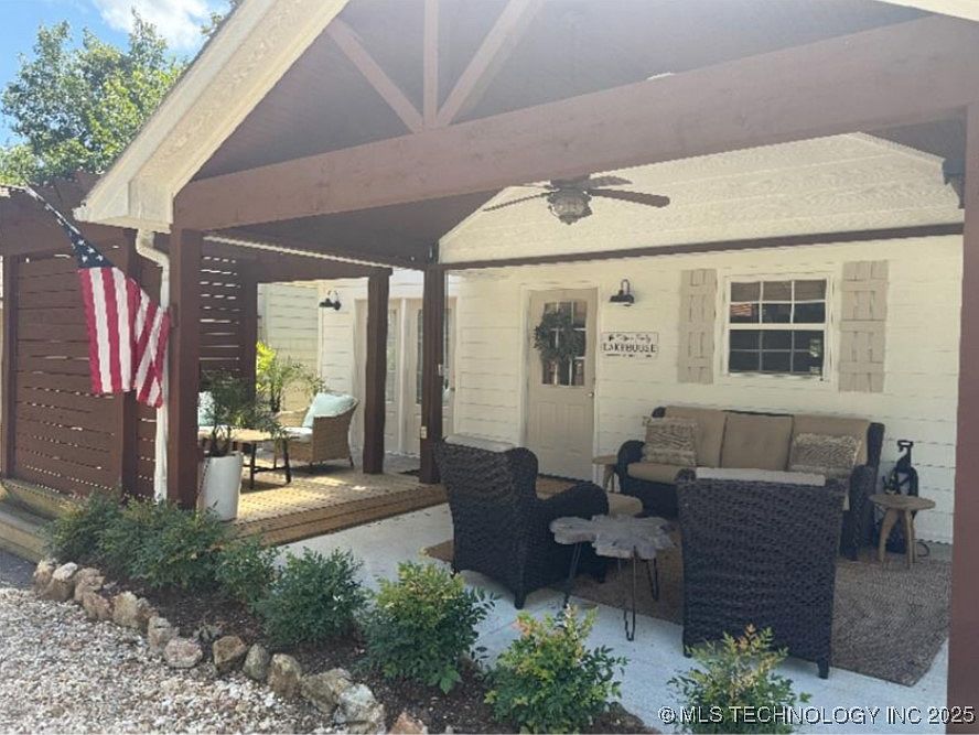 Must See Adorable Cabin inside gated Anchor's End on the shores of Grand Lake, Ketchum Cove. Turn-Key Furnished 2BD 1BA Sleeps 6. Open Kitchen to Living & Dining, Wood burning FP inside. Enjoy the peaceful view from the back deck. Safe Room and newly covered porch to enjoy sipping on your coffee while it rains. Community has five new Boat Docks, including a Swim Dock. Common Grounds have include: Playground, Sports Area: Tether Ball & Basketball. Community Shop, Library. Close to Hammerhead Marina & Rest, 1 hour from Tulsa. Home owner gets a reduced rate on boat slip. Termite bate system on property. New exterior paint 2025. New Screened back porch with great view!