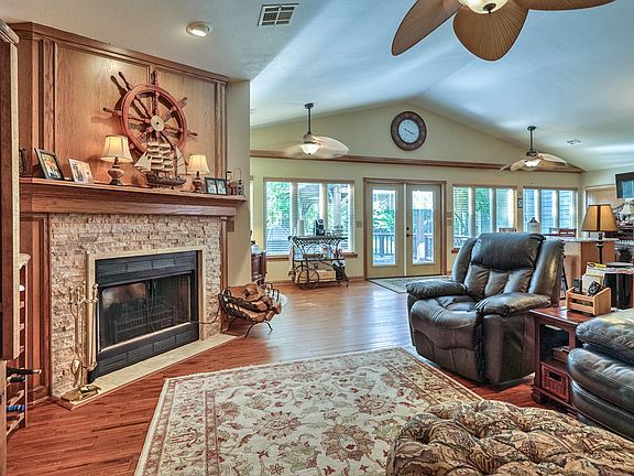 Rare find in this move in ready home in Ketchum Cove in gatedcommunity close to marinas and shopping.3/2 with large bedrooms, vaulted living and kitchen, and large deck lakeside. Completely updated with granite in kitchen and baths.Oak wood floors with Travertine in baths.. Energy efficient windows lakeside. Golf cart garage/laundry room is insulated, sheet rocked with zoned heat and air. Community docks with your own slip. Dues depend on slip size. Brand new metal roof.