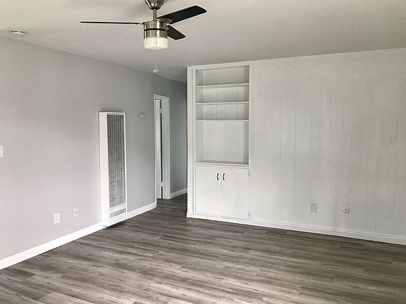 Enter the spacious living room to laminate flooring and fresh neutral paint throughout. There are several windows providing an abundance of light. Its the perfect room to display your knick nacks on the built in wall shelves.