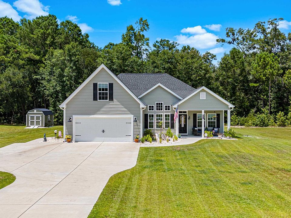 Welcome to this newly built, move-in ready 3-bedroom, 2-bath home with a bonus room that boasts several upgrades! This must-see home is situated on a private 2.58 acres on Hwy 905. This Low Country paradise has all the bells and whistles you need in a home. From the moment you pull into your long, paved driveway, you will notice the abundance of parking this home offers. Enjoy mornings or evenings on your epoxy front porch and the peace this area has to offer. As you walk into this home, you will quickly notice no corner has been cut. The traditional dining room features expansive trim and high ceilings. The spacious living room boasts a vaulted ceiling, creating an open concept with the living room, kitchen, and breakfast area. The kitchen is equipped with upgraded fingerprint-resistant appliances, a cooktop, and a custom hood to complete the look. The popular split-bedroom floor plan includes guest bedrooms finished with beautiful tray ceilings. The guest bath features dual vanities and a glass enclosure, again lacking no detail. The oversized master bedroom also boasts tray ceilings, a walk-in closet, and a great master bath. The master bath has a huge walk-in custom tile shower and dual vanities. A bonus room upstairs over the garage provides that extra space you may need. Enjoy every part of your day on your oversized screened-in porch with plenty of extra concrete, giving you all the space for a sun patio or BBQ. This massive irrigated lot also includes a brand-new storage shed for all your yard equipment! With almost an additional acre and a half behind your home, you can create trails, set up targets, or even clear it for adding any structure of your choice. With no HOA, this may be exactly what you are looking for. This home on this property will not last long, so schedule your showing today! Close to Hwy 22, this home is just a short 20-minute drive to the Atlantic Ocean and a short ride to historic Conway, where you can indulge in several local favorite restaurants, entertainment, and shopping!