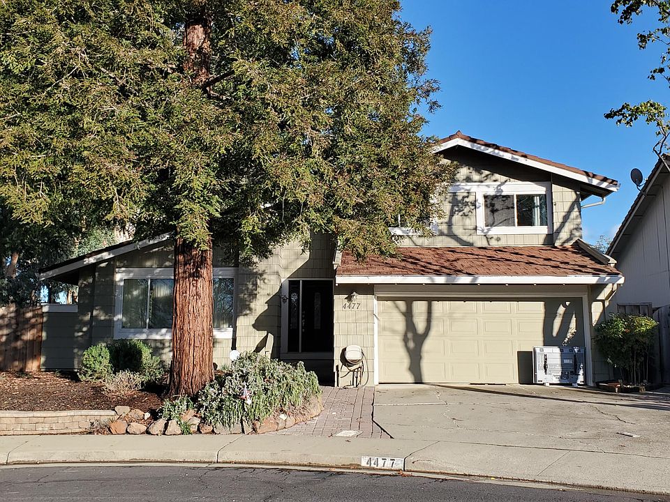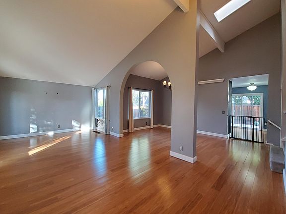 Located at Cul-de-sac surrounded by mature redwood trees. This Crossing home awaits for your move in. On entry find a beautiful living room and separate formal dining area w/vaulted ceiling and arched doorway, with the skylight above. Beautiful bamboo flooring throughout.The Kitchen features black stone counters, white cabinets, farmhouse sink, stainless-steel appliances, and dual-fuel range (gas burners & electric oven). Step down into the spacious family room featuring a brick fireplace with pellet stove. Upstairs you'll find the master suite, bonus finished closet/storage and en-suite bathroom. There are two additional bedrooms and remodeled hall bathroom featuring subway tiles and modern fixtures. The backyard is a perfect place to unwind, garden or entertain. 5 minutes to Wholefoods, restaurants and parks. Community has Club House, Gym/Exercise Facility, Playground, Pools and Tennis Court(s). Owner pays for HOA. Renter pays for all utilities, garden maintenance, and gutter cleaning twice a year.