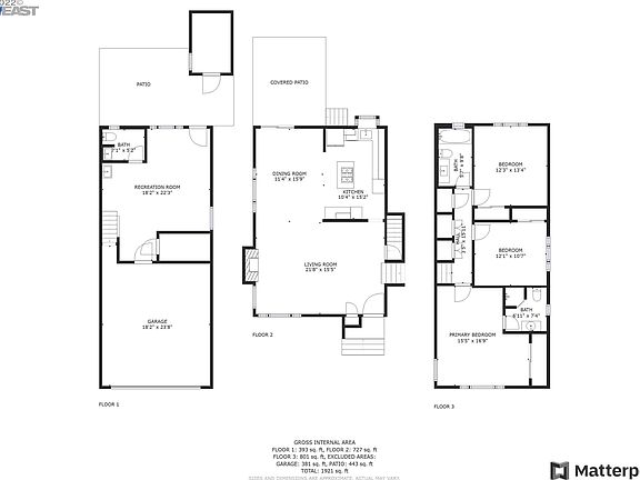 - Total interior livable area: 1,921 sqft