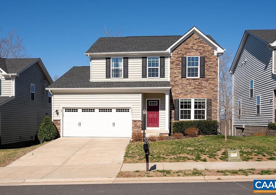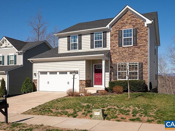 With a view of the Rivanna River and the western mountain range, you won't want to miss this 2018 Riverwood home in Northern Albemarle. Entering the foyer you will find the living room to the right. The large open family room, dining area, and kitchen span the rear of the home where you can take in the peaceful serenity of the wooded view and enjoy total privacy. Also on the first floor are a convenient laundry room just inside the garage and a half bath. 4 bedrooms up, including a huge primary suite make for a straightforward floorplan. The basement level is mostly finished with high ceilings and the possibility of many different uses, including rec room or home office. Multiple storage areas and a rough in for Full Bath as well. Don't miss the 2 car garage. HOA takes care of snow removal and trash. Easy access to NGIC, the airport, Hollymead towncenter and all northern wineries and other attractions. Additionally, two separate playgrounds are in close walking distance.