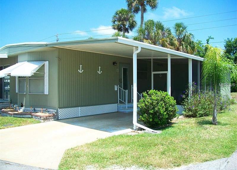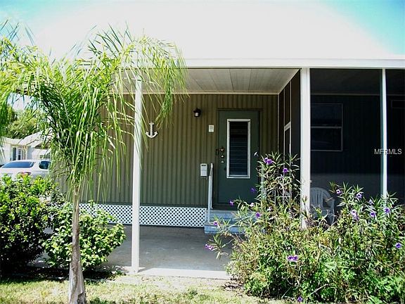A little slice of Paradise at an affordable price with a Brand New AC. This well kept home is located in a pretty 55+ community with a HEATED community pool and parking for small RVs & boats. Owners are allowed to rent up to 6 months per year. Beautiful newer laminate floors throughout. Bright good sized kitchen comes with appliances and has a breakfast bar, pantry and lots of cabinets. Large living room has sliders to front porch, and is open to dining room which features a wall of built in cabinets for additional storage. Master bedroom is huge with a nice walk in closet and master bath. 2nd bedroom is large too providing plenty of room for guests or family. Enjoy the outdoors at the pool or relax in your screened lanai. Convenient laundry room with extra storage space and workshop space. 10 year termite bond transfers to new owner. Small pets are welcome. Family and grandchildren are welcome. Close to beaches, shopping and restaurants.