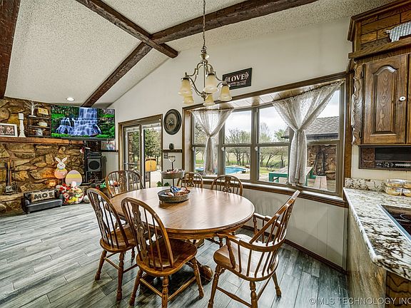 Welcome to your dream oasis! This stunning ranch style home boasts 4 bedrooms (or 3 bedrooms with a bonus room), 3 and a half baths, and spans across an impressive 2,891 square feet of well-designed living space. Nestled on a sprawling 7-acre lot, this property offers the perfect blend of comfort, luxury, and outdoor serenity. The heart of the home is a generously sized kitchen that's perfect for hosting family gatherings and entertaining friends. Ample countertop space, modern appliances, and a convenient layout make cooking a joy. Ensuring your family's safety, the house comes equipped with an indoor storm shelter, providing peace of mind during severe weather. Step outside and indulge in the luxurious salt water swimming pool. Spend your summers soaking up the sun and enjoying refreshing swims right in your backyard. A massive 40 x 80 shop with a convenient drive-through wash bay provides ample storage for all your vehicles, equipment, and hobbies. A true handyman's delight!