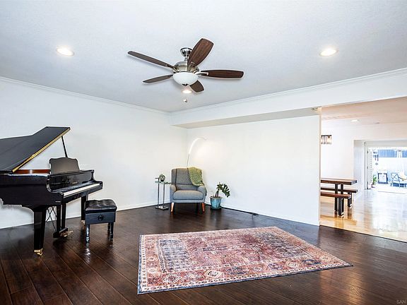 Step into your eco-conscious oasis dream home with 30 owned solar panels, an electric car charger, and two powerful Tesla batteries (27 kWh total), you'll have peace of mind knowing your home is energy-efficient—even overnight. Additionally, the central AC and heat, whole house fan, along with an upgraded Rheem tankless water heater (2020), drought-tolerant landscape and energy saving appliances all help to make this a cost effective home. Designed for a seamless indoor outdoor living, the recently remodeled kitchen (2023) is a chef's delight, boasting sleek quartz countertops, ample storage, and a full suite of newer (2023) Bosch appliances. The large dining room is perfect for hosting memorable dinner parties. The newly custom-built buffet features real wood cabinetry and a chic quartz countertop and backsplash, with a built-in wine fridge and beverage cooler. Outside, the bi-level backyard creates the ultimate year-round San Diego lifestyle party zone. The lower level offers a dreamy setup for alfresco dining perfect for family get-togethers and reunions. Ready to relax? Sink into the brand-new hot tub (2023) housed on a professionally poured cement slab. The upper pool deck offers something for everyone. Whether you enjoy an invigorating dip in the pool or lounging in the sun or unwinding with some meditative yoga by a soothing fountain or a place to explore your inner green thumb in a thriving vegetable and herb garden or simply enjoy the tranquility of your oasis home, whatever the mood, this energy efficient home has something everyone. Welcome home!