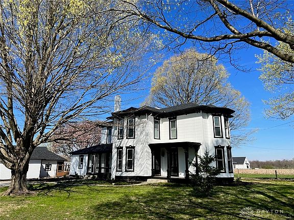 THIS ONE IS A GEM! This home has the character and bones of the old Victorian style, yet has been completely remodeled from top to bottom and is in Miami East school district located between Piqua and Troy. This stunning home features 2 paddocks, a large barn, chicken coop/.potting shed and 2 mini silos that have been converted into an entertainment area. The side by side mini silos have a concrete patio to entertain along with one used as a covered area and the other a bar, now this is one of a kind entertainment. This beautiful home has new plumbing, electric, furnace, water softener, air, water heater, roofs on the barn, chicken coop, garage and home, walls and ceilings have been laminated with new drywall, new windows and all the finest finishes inside. The stunning kitchen features a 48'' range with hood, quartz countertops, new cabinets and appliances and a large island opening to the breakfast room/sitting area which opens onto a wooden deck which is the perfect spot for your morning coffee under the Magnolia tree. All light fixtures are a feature along with the beautiful original woodwork and 9ft doors and 10' ceilings. The master suite features a walk in closet and a shower that makes a statement! There are an additional 2 large bedrooms and bathroom upstairs and the 4th bedroom/office is on the first floor with double closets. The 3rd bathroom is on the first floor. This home melds the old with the new perfectly and is definitely a must see. There are not too many properties like this one!