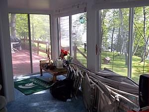 Sprawling ranch on Hubbard Lake's W. shore! Very open and cheery with lots of glass on lake side (5 doorwalls on Lake) Attractive fireplace in living room and also in the den (wood burning) . This spacious home offers an open living room, dining/kitchen, den (tv) room w/fireplace, large computer room (many uses...new carpeting) glassed in 12' x 21' porch overlooking lake and 9'x28' deck. 3 good size bedrooms, 2 full baths (1 bedroom has an adjoining bath and access to it is also from the den.) The interior is attractive paneling & drywall and the flooring is carpeting and wood. New septic system in 1999. 9'x10' laundry room has storage and is a good space (hot water is instant) The garage is 34'x25' and has a separate 11'x25' workshop w/separate door to the outside. Great yard!! At the water's edge is an excellent stairway to the dock & includes a landing part way down. At the top of the stairs is a small patio area and power to the lake. Very quiet area off main roadway makes this house very desirable. Call agent to take a look today!! (Natural gas is to the driveway)