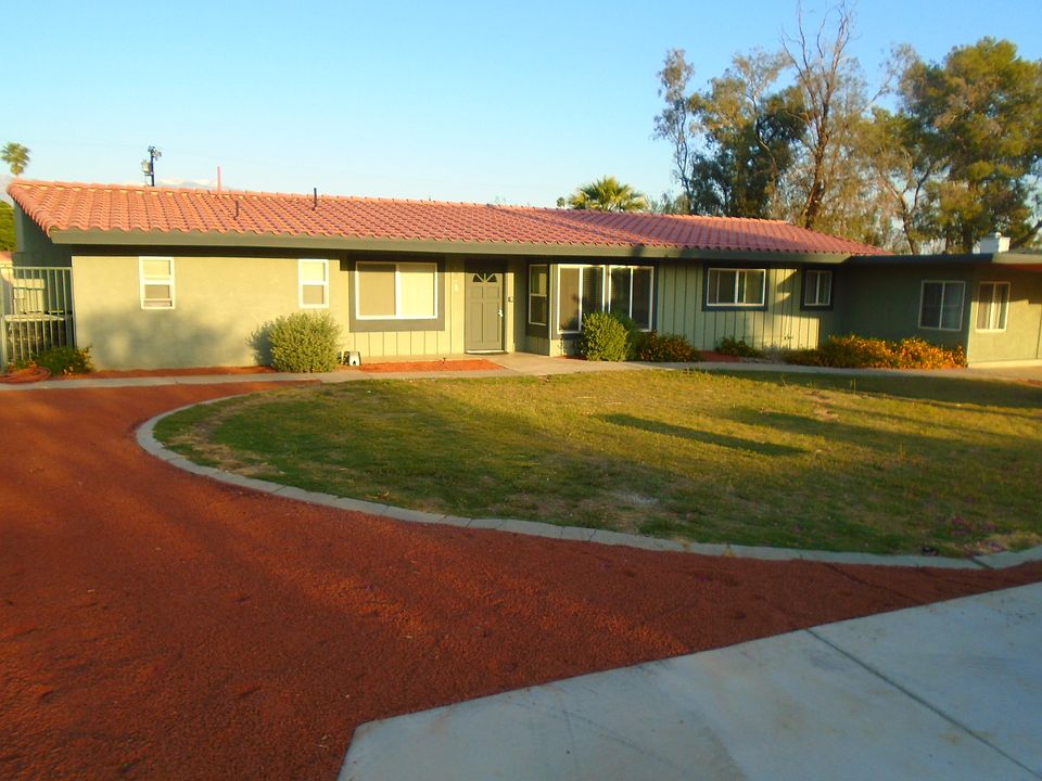 Pool and gardener paid. Refinished pool. Huge rear yard. Available now. Owner pays gardener and pool service. Deposit $2100. Credit report. $30. Large Hacienda Ranch style home on huge 20,000 sf lot. Big back yard. Quiet street. Renovated 3 yrs ago. 2,208 sf open floor plan with large rooms. Two master bedroom suites on oposite sides of home. One has a retreat. plus there is also a large 3rd bedroom. French doors to access pool/ huge back yard from most rooms. Updated kitchen with stainless steel appliances, granite counters and breakfast counter for stools. Also has a breakfast room. 3 updated baths have ceramic tiled glass mosaic shower walls/floors and granite counters. Ceramic tile and laminate wood floors and recessed lights. New window coverings. Refinished pool and pool deck coating plus a wood storage shed. New sprinklers and pebble stone yard. Mountain views. Central location 2 blocks to a park and Highway 111, El Paseo and near College of the Desert. Carport parking. Pool and landscape services paid by owner 1 year lease $2100 deposit Minimum Requirements Tenant must be current on all accounts and have acceptable credit report and verifiable rental history Credit report fee $30. minimum 640 credit score or increased deposit No current collections. late payments or evictions Stable employment or income source $5,000 minimum verifiable stable monthly income - through monthly bank statements, tax returns or pay stubs of employer or provide proof of adequate savings/assets if retired.