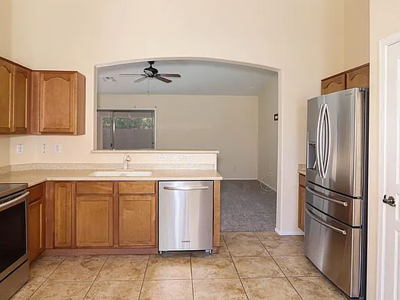 BRAND NEW carpet and custom paint. This spacious 3 bed/2bath with a 2 car garage has a lot to offer every buyer! Practically new stainless appliances, corian countertops. This home is move-in ready with ceiling fans, surround sound prewire, laundry room cabinetry with washer, dryer, refrigerator and microwave included. Backyard is completed for outdoor living. Easy walking distance to schools, parks and the city of Maricopa's multi generational complex. Builder was Hacienda Homes, the 2x6 builder. Start earning equity in a home today and build your wealth.