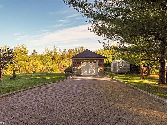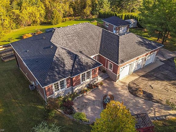 ALL BRICK & STONE BUNGALOW OVERLOOKING THE COUNTRY SIDE. FULL WALKOUT BASEMENT ON APROX 2 ACRES. SWEEPING ASHPHALT PAVED DRIVEWAY LEADS TO AMAZING CUSTOM BUILT HOME WITH 3 CAR ATTACHED GARAGE & A 4TH DETACHED GARAGE/WORKSHOP. ENTRANCE FOYER WITH CLOSET & OPEN PLAN TO LIVING, WITH FIREPLACE AND DINNING. LARGE EAT-IN KITCHEN WITH WALKOUT TO WRAP AROUND DECK OVERLOOKING STUNNING PRIVATE BACKYARD. MAIN FLOOR LAUNDRY WITH DIRECT ACCESS TO GARAGE. MASTER WITH NEWLY RENOVATED 4 PC BATHROOM (NOV 2020) & WALK IN CLOSET. 2ND & 3RD BEDROOMS WITH B.I.C. 2ND 4PC BATHRROM COMPLE THE MAIN FLOOR. OAKWOOD STAIRS LEAD TO THE FULLY FINISHED WALK OUT BASEMENT WITH 4TH & 5TH BEDROOMS, REC ROOM & FAMILY ROOM, 3 PC BATHROOM WITH TANNING BED. LOTS PF NATURAL LIGHT, IN-LAW POTENTIAL.