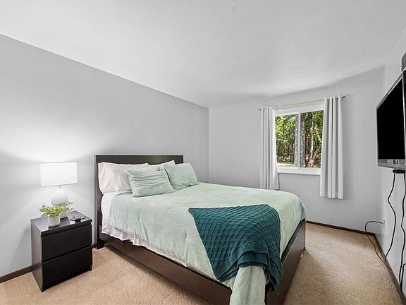 Discover this breathtaking townhome featuring brand new windows and two sliding glass doors with screens. The dining room opens onto a private patio that offers serene views of the woods and walking trails. Imagine relaxing on the patio with a cup of coffee or a glass of wine, watching the local wildlife play. The updated powder room and kitchen boast new countertops and backsplash. The expansive primary bedroom includes a vast double closet and a convenient and updated Jack and Jill bathroom. The additional two bedrooms are generously sized and provide views of the woods. Residents can enjoy numerous walking trails, a heated swimming pool, and a community room.