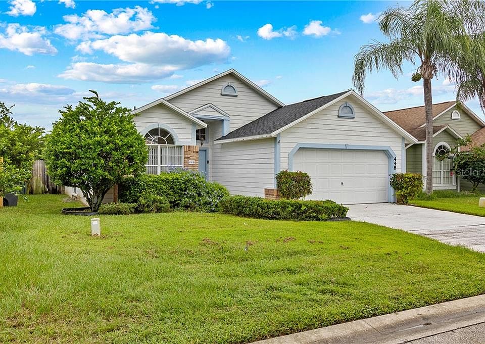 You will not want to miss out on this BEAUTIFUL 4-bedroom/2-bath furnished POOL HOME in the fantastic community of Davenport Lakes. This home has been on a short-term rental program, but it would also make a great single-family residence or vacation home. Cathedral ceilings and high windows bring plenty of natural light to the open floorplan which features a dining room, and a large living room with sliding doors that showcase beautiful pool views. There is an eat-in kitchen at the front of the home with beautiful cabinetry, a pantry and breakfast bar for extra seating. There are four spacious bedrooms, and the home is currently configured to sleep 10 people with room for more. Two bedrooms are located in their own wing near the guest bathroom, a third bedroom is located off of the living room and features a queen size bed, a large closet and sliding glass doors leading out to the pool. The master suite is on the opposite side of the home and also has sliding doors to the pool and an adjoining bath with a walk-in shower and large master closet. Step out onto the screened lania and lounge poolside, or splash into the inground pool to cool off. The backyard is fully fenced and very private, and part of the lania is covered to give some shade. When you are ready for some fun, head down to the fantastic community amenities that Davenport Lakes has to offer including tennis courts, a community pool and covered pavilion, playground and private boat dock giving you access to Old Lake Davenport. This home is located in the heart of the theme parks, with excellent shopping and dining within minutes. Call us today to schedule your tour!