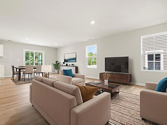 MOVE-IN READY: Welcome to the Hazel plan at Pearces Landing Single Family Homes by Ryan Homes in Zebulon, NC! This spacious home offers 5 bedrooms, 3 bathrooms, a 2-car garage, and 2,550 square feet of living space. This home features quartz countertops, white cabinets, stainless steel appliances, gas range, and a combination of luxury vinyl plank and carpet throughout. The first floor features a large great room that opens to a kitchen with a center island and a dining area. Just off the garage, there is a guest suite with a full bathroom, so you do not have to give up your flex room at the front of the home. This flex space is great for a home office, playroom, or hobby area. Upstairs, four bedrooms each have walk-in closets and share a full bathroom in the hallway. The owner's suite is a private retreat with a dual-vanity bathroom and two large walk-in closets. Pearces Landing offers resort-style amenities and is just 10 miles from Raleigh.. Schedule your appointment today to start your homebuying journey.