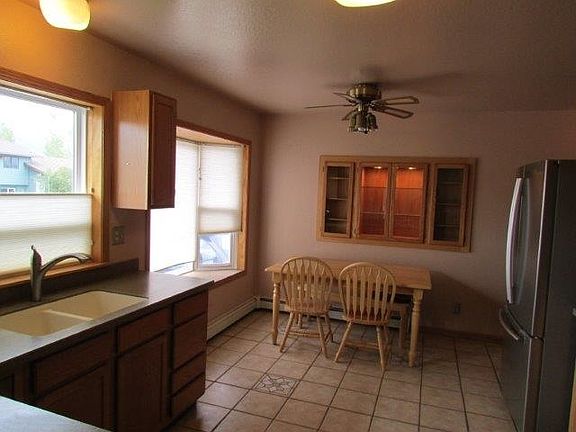 This is a "turn key" home in a wonderful, convenient location. Metal siding and updated windows keeps the maintenance down. Cozy gas fireplace is a focal point in the living room along with the beautiful wood floors. Spacious updated kitchen with tile floors, solid surface counter tops & stainless appliances. Beautiful backyard with sprinkler system, drip system, fruit trees, raspberry garden and perennials. Low maintenance trex deck in front & back. Good value!
