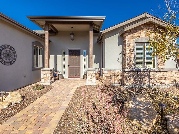 Newer Single Level 3 bedroom 2 bath home with a 3 car garage. in nice Prescott Lakes area subdivision with out the monthly dues. 10' ceilings, open floor plan, eat-in Kitchen with granite counter tops, breakfast bar, & breakfast nook, large pantry, stainless steel appliances, large laundry room off the kitchen. Plus formal dinning area off covered patio for enjoying all four seasons. Additional flagstone open patio for entertaining landscaped front and back on timers and drip for care-fee maintenance. Split floor plan large master suite with foyer and bathroom with separate tub and shower large walk in closet. All windows are fitted with bass wood shutters.$7,000.00 value Close to Adult Center, schools, hospitals and shopping. Only four miles to Historic Downtown Prescott