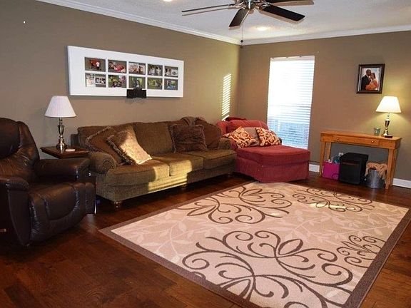 Can you imagine.....2 master suites. The choice is yours! Hardwood & tile throughout home is always a plus. Updated kitchen with concrete counters and breakfast room area. Dining room is currently playroom. Large family room for entertaining. Over sized master bedroom suite & bath has double vanities, walk-in closet & large tile shower. Addition of second closet in master bedroom. Laundry room is spacious enough to have office space & mud room feature. Covered patio leads to fenced yard & 3 car carport. Energy efficient windows and metal roof. Quiet & convenient Willow Brook neighborhood.