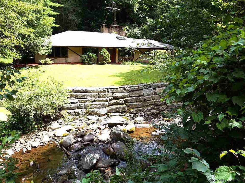 Private, Stream front solidly built mid century modern contemporary just waiting for your personal touches. If you are seeking a private stream front retreat from the world then you have found it here. Off the beaten path yet so close to the hip town of Phoenicia, skiing at Belleayre just minutes away from Woodstock and so much more. As you cross your bridge to your fortress, you will notice how substantial the home seems to be in terms of construction quality. Open living room/dining room area and another separate den or tv room, just the other side of the double sided fireplace that is centrally located in the home for ideal efficiency. 3 large bedrooms and a kitchen that is well situated for lots of entertaining with all your friends and family. Brand new carpet in many of the main living areas. Easy to see and easy to love. Oh and did I mention, surrounded by greenery on all sides. You're gonna love it