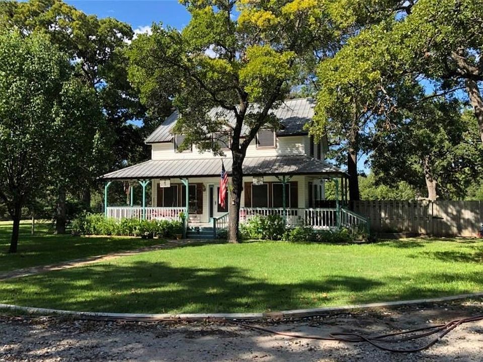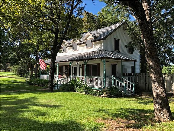 Cutest FARM HOUSE on the market!! 5 ACRES! SHOP! POND! HORSES WELCOME! Charming 3 bedroom 2 bath 2 story with wrap around porch, wood floors, metal roof, balcony, storage building with attached carport, 35x45 shop, gorgeous mature shade trees, pond, fenced and cross fenced! Tractor stays with acceptable offer. ALL INFORMATION DEEMED RELIABLE BUT NOT GUARANTEED, BUYER AND BUYERS AGENT TO VERIFY ALL INFORMATION HEREIN.