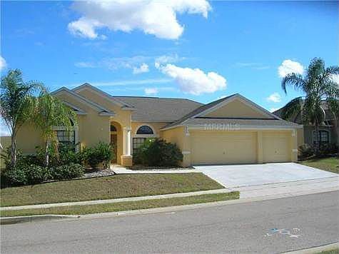 Freshly painted Pool Home in Desirable Legacy Park! This lovely home features newer vinyl planking flooring in the main areas and newer stainless steel appliances. Three car garage. This home also boasts many architectural details throughout the home, a huge kitchen with break fast area, large island, large laundry room with storage and sink and a screen enclosed in-ground pool. Pool care is included in rent. (master bedroom floor is being replaced and grass installed in the front). 15 minutes to Disney. Come view today! Washer and dryer is provided for convenience use. Pool Heater does not convey.