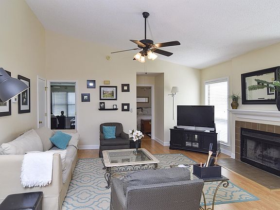 Perfectly Beautiful condo in pristine condition!! Vaulted ceiling, wood burning fireplace and ceiling fan in Great Room. Wood flooring everywhere except the large laundry/utility room. Kitchen includes granite countertops, white painted cabinets, under cabinet lighting to illuminate your workspace, and all appliances including refrigerator, stove, dishwasher and disposal. Nearly new washer and dryer stay with the condo! Spacious owner's suite includes walk-in closet & private bath with granite vanity. Private deck just off the dining area ... great for grilling those steaks this summer! Community pool and pool house with baths and changing areas. Regime includes water, sewer, exterior maintenance, pool maintenance landscaping and pest control. Close to USC Medical School, USC Law School, downtown and shopping. This is a MUST SEE condo!