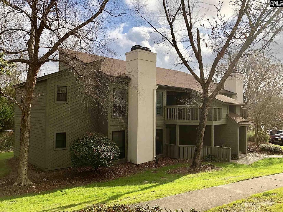 Upstairs 2 Bedroom/2 Bathroom Condo in Deerwood Knoll. Open floor plan. Great room has wood burning fireplace and cathedral ceilings. Dining area is open to kitchen with all appliances. Laundry room off kitchen with washer/dryer that remain. Split bedroom plan. 2 Master suites, each with private bath, provides privacy. One bedroom opens to the deck with storage closet overlooking lawn area. Community pool and cabana. Convenient location is close to USC, Medical School, Midlands Tech, Fort Jackson, I-77, and downtown Columbia. Regime Fee covers: Water, Sewer, Trash, Exterior Maintenance, Exterior Insurance, Landscaping.