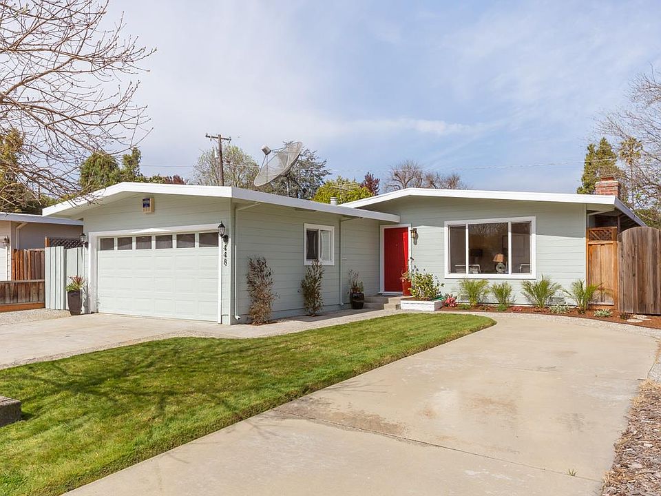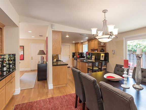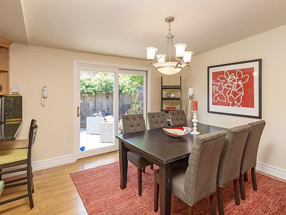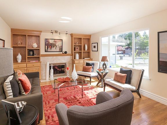 Updated ranch home close to Google. Light-filled living room with wood-burning fireplace outlined in marble and flanked by built-in shelves and cabinetry. Updated kitchen with custom cabinetry topped in granite, full-height backsplashes, peninsula counter and stainless steel appliances. Dining area open to the kitchen. Master retreat with center light, wardrobe closet, door to the rear yard and tiled en suite bath with glass-enclosed shower. Two additional bedrooms, each with center light and wardrobe closet, are served by a tiled bath. Attached 2-car garage with sink, cabinetry and laundry area. Wraparound rear yard with large patio and many mature fruit trees. Desirable Monta Loma neighborhood just blocks to Thaddeus Park, Monta Loma Park, and shopping and dining. 1 mile to Highway 101 for community and less than 2 miles to Google. Excellent Mountain View schools.