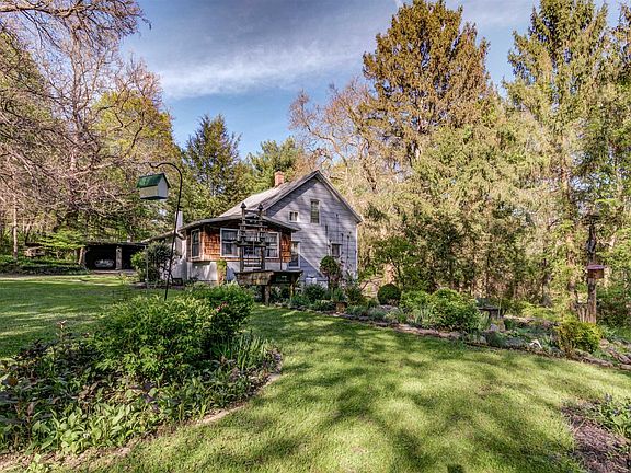 Moseying this property of gardens & wildlife made me nostalgic of childhood. Splashing in the spring fed pond, finding treasures, discovering & make believe..You will feel the magic as well, when you come to this home on 10 acres in Ulster County, NY, 90 miles from NYC- surrounded by endless nature -a creek, river, rail trail, trestle, & limestone caves. While the town is historic, the home is no exception on an old farm. The building behind used to home farm workers & still has antiques. A cistern holds rainwater from gutters & connects to a hand pump of a bygone time. The kitchen overlooks a garden, that transcends you to a peaceful mindset. The wood stove heats up the whole house. To complete the main floor is the dining room, bathroom & spacious living room with wide plank floors. Upstairs is the master, 2nd bedroom, nursery or closet & extra room. 10 min to up and coming Kingston, Saugerties & New Paltz. A perfect getaway as the Times just called this the new Hamptons of New York! Rosendale is a small population of about 6,000 -Nearby are orchards, farm stands