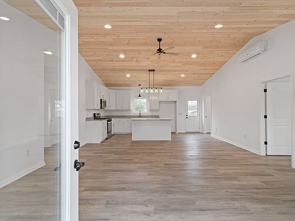 Welcome to this brand new barndominium nestled on a large corner lot. As you step inside, you’ll be greeted by the warm ambiance of a white-washed pine ceiling, lending a rustic yet modern charm to the space. The front door boasts blinds for added privacy and style. Walk across the sleek vinyl plank flooring that flows seamlessly throughout the home, leading you to a spacious kitchen complete with an inviting island, perfect for culinary adventures and gatherings with loved ones. Enjoy the convenience of a tankless water heater, ensuring endless hot water for your comfort. Embrace the unique blend of country living and contemporary design in this delightful barndominium. Stove/oven and water heater are powered by natural gas. Hookups for gas or electric dryer.