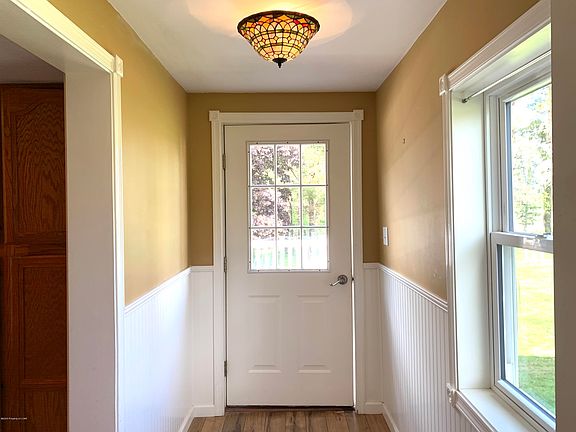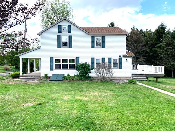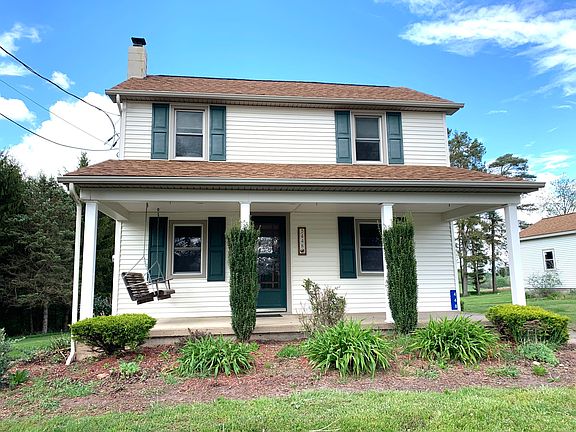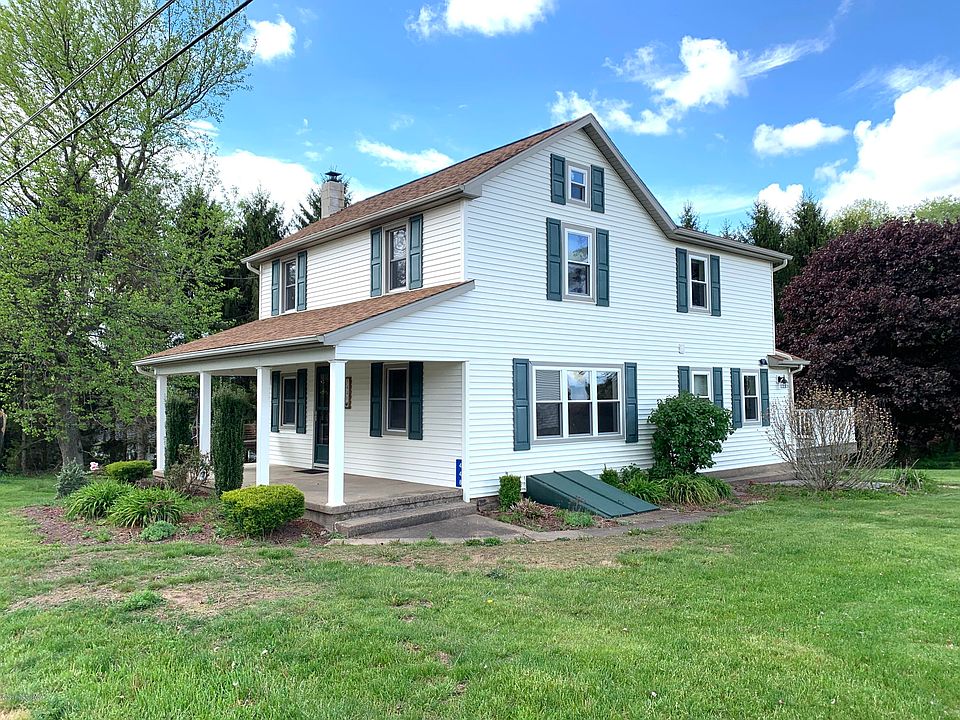 Shelter in place here! Remodeled Country Farmhouse on 1.5 acres w/3 Car garage, spacious, remodeled eat-in kitchen w/newer SS appliances. 1st floor laundry/bath, hardwood floor LR/DR, huge Master BR, family bath dbl vanity, newer gas heat 2014, water line/well tank 2015, kitchen appliances 2017, water system 2017, electric HWH 2018. 24x15 read deck, 2 detached garages, shed, serene country setting