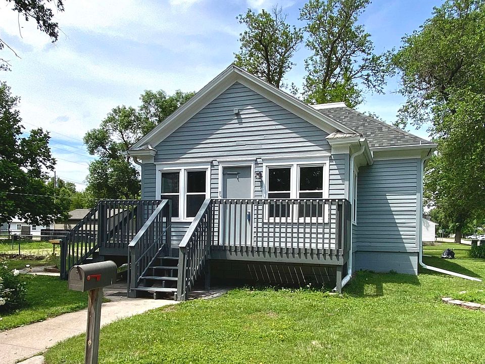 UPDATE: Owner has recently installed new vinyl flooring in the entry & dining room, new carpet in the living room and both main floor bedrooms, and some new bedroom doors. This 2 Bedroom, 2 Bath home has a full basement and is located on an extra large corner lot. The lot is 165' x 88' with plenty of room for a good size garage and ample space for various recreational activities.....garden, swimming pool, volleyball, pergola, fire pit area......the possibilities are endless! There are 1300 square feet on the main floor and 1300 square feet in the finished basement. Main floor consists of an enclosed front porch, living room, dining room, 2 bedrooms, bathroom and kitchen. The basement is set up with 3 separate areas plus a bathroom (recently remodeled), a laundry/storage room and a furnace room. There are also 2 exit stairways, one on the north side leading up to the kitchen and back door, and one exiting to the west side to the fenced in yard area. The roof is 4 years old. The exterior has brand new paint as well as most of the interior. Shed on north side of house is included.