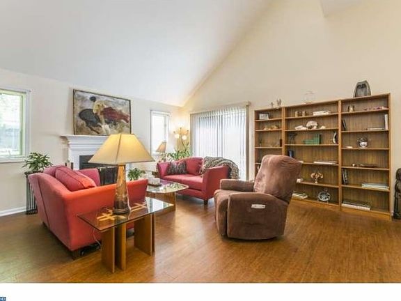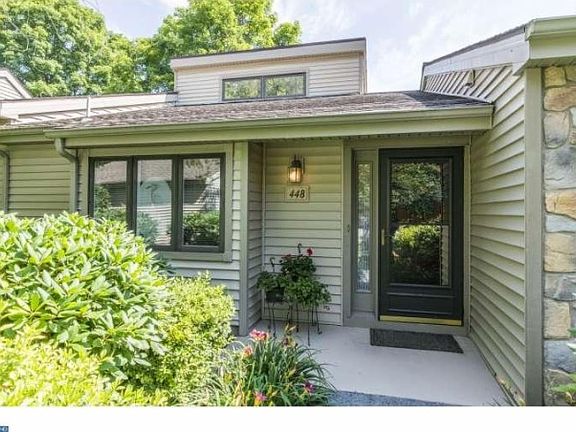 MOVE IN READY and waiting for a lucky buyer to enjoy this bright one floor Londongrove model in Eaton Village. All siding was replaced with vinyl ( Village provides power wash ) for the benefit of the future buyer. Cost to the seller was $15000. Great location, short level walkway from garage to front door and one of only two villages with its own pool. Porcelain-tile floor entry & hallway, eat-in kitchen with 3 bright windows, solid wood kitchen cabinets, porcelain-tile floors, Silestone countertop, deep stainless steel sink, and recessed lighting and pantry. Spacious living/dining room with clerestory window, a wood burning fireplace, new cork flooring, and a double slider door leading onto the patio that is surrounded by a hummingbird/butterfly garden and faces a large backyard. The home has a master bedroom with walk-in closet, additional double slider door closet and master bathroom with shelved closet. Second bedroom has nice view overlooking patio and backyard. Along the hall is a coat closet, a linen closet and a dedicated laundry space as well as a second bathroom. This all caters to a simple living situation perfect for easy living.