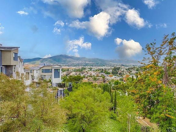 Welcome to Viewpointe Commons, a 2021 built townhome community located in central San Marcos, within 5-7 minutes of CSUSM, Palomar Community College, award winning schools, and numerous parks. One of the most desirable locations, this three-story end-unit townhome is located at the top of the community with amazing mountain views and boasts luxury plank flooring throughout, upgraded fixtures, paid-off solar, and many energy efficient options with the newer construction. The garage is located on the first floor along with a charming entryway that leads upstairs to the main floor. The main floor has an open kitchen, dining area, living room, and half bath. The kitchen boasts a large eat-at island, stainless steel appliances, a pantry, granite countertops, and plenty of cabinet space. Upstairs you'll find two bedrooms and two bathrooms, along with a stackable washer/dryer in the hallway closet. The primary suite is spacious with a ceiling fan,and an ensuite with dual vanities and upgrades throughout. Additional features include air conditioning, two car attached garage, a community tot lot, and guest parking.