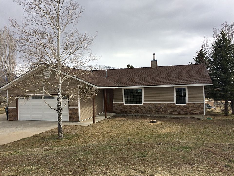 Welcome to 448 Foxridge Drive, a home with the most incredible views of the ruby mountains, as you enter the home you will realize the warmth from the wood stove, and all the tiled floors (easy for clean up!) master suite is on the opposite side of the home from the other bedrooms, with a walk out patio perfect for a hot tub area. All 2 acres are fenced, and cross fenced for animals home offers horse shelter, a storage shed and barn with two stalls, and a dog kennel, front yard has a sprinkler system that was just installed last spring, and a ton of mature trees surrounding the property. Garden area is also plumbed into the sprinkler system. Make this cozy home a must see!