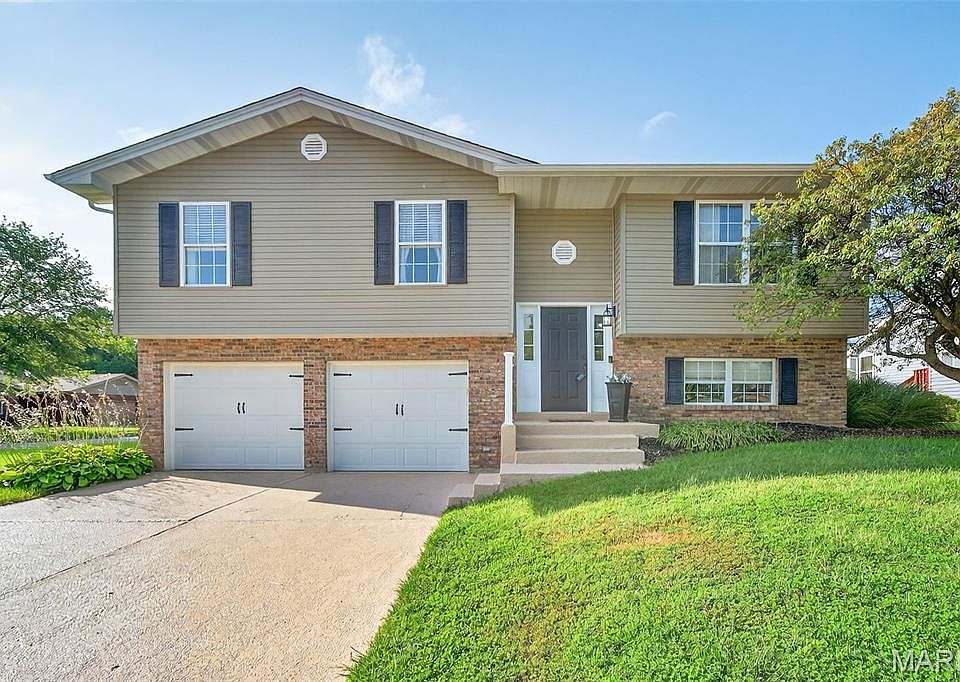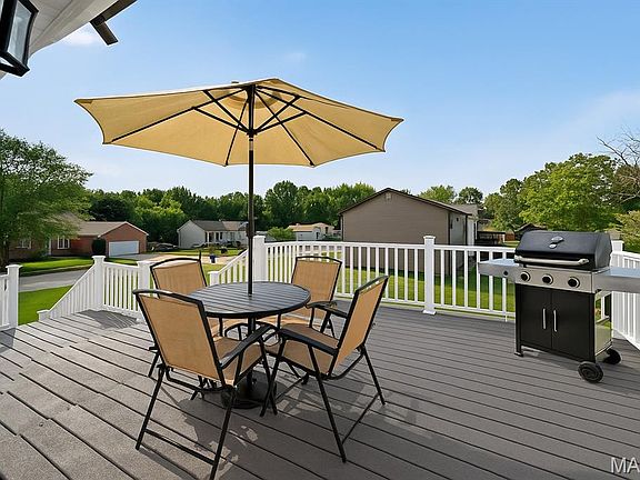 Welcome to this super cute home in the heart of Wentzville, offering a thoughtful layout and stylish updates throughout-all with no HOA restrictions! The main level features an open floorplan with a vaulted living room, dining area, and kitchen—perfect for modern living and entertaining. All-new laminate flooring and fresh paint adds a fresh, cohesive feel. The kitchen is light and bright with a pantry, a brand-new oven and microwave, and a window over the sink with backyard views. The dining area walks out to a large two-tier deck, ideal for summer BBQs or relaxing evenings outdoors. The primary suite is a true retreat with dual closets—one a spacious walk-in—and a private full bath with an oversized vanity. Two additional bedrooms showcase custom wall details and share a full hall bath. The finished lower level offers a cozy second living area with a gas fireplace featuring a brick surround and wood mantle, plus a convenient half bath—perfect for movie nights or game day gatherings. This home combines charm, function, and comfort in a great Wentzville location—don’t miss your chance to make it yours!