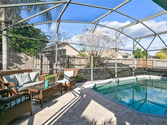 PRICED TO SELL! You can't beat this spacious, well maintained pool home with fresh paint and a BRAND NEW ROOF! Other upgrades in the past 3 years include beautiful new laminate flooring throughout (tile in wet areas), a new air conditioner, new pool screen and renovations to the 2nd bath. Other features include soaring cathedral ceilings, a gas insert fireplace, living/dining room combination plus family room and eat-in kitchen, double sinks plus a garden tub and separate shower in the Master Bath. French doors access the covered outdoor living space and screened pool. The 4th bedroom is off the living room and is being used as an office. Quiet location but close to shopping, recreation areas and schools. Don't wait too long - this won't last.