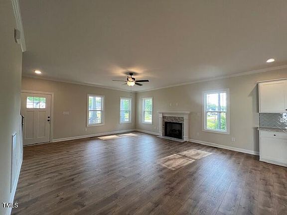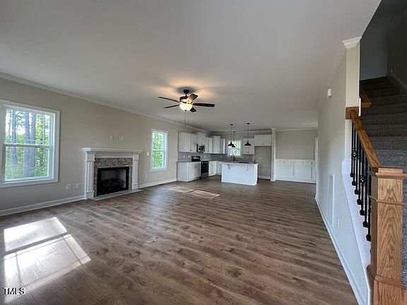 This impressive, open-floor plan blends custom details with practicality, comfort & charm. Gorgeous kitchen features timeless soft-close shaker cabinets, stainless steel appliances including a microwave (vented to the outside), recessed & pendant lights over an island, plus a WALK-IN PANTRY behind a barn door. Enjoy meals & make memories in the sizable Dining Area perfect for gatherings & game nights. Retreat to the upstairs spacious Owners' Suite with a beautiful double-tray ceiling, large walk-in closet with custom-built wood shelving & spa-like bath. Secondary bedrooms share JACK & JILL BATH with private water closet. 4th room makes a wonderful designated office or In-law / Guest Suite. Enjoy the gentle breeze on the covered front porch or back deck. This is peaceful, country living with nearby-city conveniences. Shop at nearby Publix & Harris Teeter in Clayton's Flowers Plantation. Constructed by a small, local builder. Feel the difference.