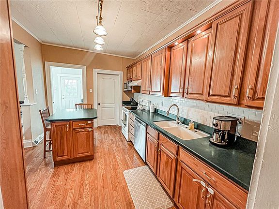 Located in historic downtown Beaver, this move-in ready home is situated on a quiet corner lot but is also within walking distance to local schools and the 3rd Street businesses. As soon as you enter you'll notice the original trim work and 9ft ceilings. A large comfortable living room with exposed brick is the heart of this home. The kitchen has oak cabinets, solid surface countertops, pantry and tile backsplash. It's also open to the dining area which features a 2nd gorgeous brick fireplace. The cozy den has an abundance of natural light and is ideal for an office, playroom or additional living space. Rounding out the 1st floor you'll find a full, remodeled bathroom and laundry area! Upstairs, is your spacious master bedroom, a full bath and two additional bedrooms just waiting for your personal touches! Enjoy your morning coffee on the quintessential front porch swing or host a party in your spacious back yard. With off-street parking and a large shed, what more could you ask for?