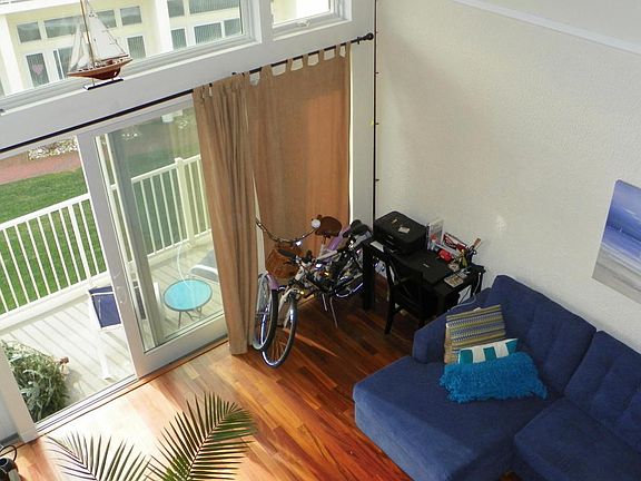 Beautiful ocean front multi-level condo that features cathedral ceilings w/floor to ceiling sliding glass doors for lots of sunshine & ocean view balcony. Private pool included for your summertime enjoyment. Gorgeous hardwood flooring through-out. Washer & Dryer in unit! 2nd floor large loft bedroom with walk-in closet & full master bath. Unique storage space also in unit. Seconds away to Pier Village, great restaurants, & of course the beach! Yearly rental, very sorry assn. does not allow pets.