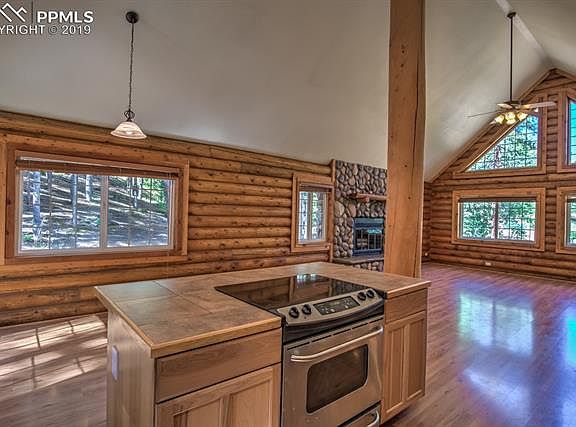 Beautiful Swedish Cope Log Home with river rock accented exterior. Located on 1.26 wooded acres. This amazing home privately sits towards the end of a Cul-de-sac and offers peace and tranquility. As you enter the home you will be drawn in by the open floorplan, soaring 22-foot cathedral ceilings, huge wall of windows allowing tons of natural light in! You?ll love the living room area with floor to ceiling, river rock fireplace. The dining room has slider doors that leads to a back deck, perfect for coffee and BBQing. The large eat-in kitchen has breakfast bar Island and beautiful 42 inch rustic hickory cabinets. Stainless steel appliance package. Spacious Master Suite with adjoining 5 piece bath, oversized jetted tub and walk-in closet. Lower level has two additional nice sized bedrooms, bonus room and attached two car heated garage with workbench. The entire home has highly efficient, natural gas, in floor hot water heating system. Metal roof looks great and will help cut down the costs of insurance premiums. Home is just a few minutes from stocked community lakes fishing lakes and club house. Pike National Forest is very close for hiking, biking, ATVing, hunting, cross country skiing and snowshoeing. A quick drive to Woodland Park. Forty Five minutes to Colorado Springs. Only 1.5 hours to skiing at Breckenridge or Monarch. Lot is nicely treed with pines, fir, spruce and aspen. Come take a look, this home is what Colorado living is all about!!