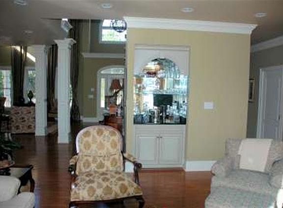A formal living room with sweeping eighteen-foot windows sets the tone for this elegant home that also has a formal dining room. With a wrap-around porch on the front, a spacious deck on the back, and an open plan with excellent flow, the home provides a wonderful setting for entertaining. There are two master bedrooms, one downstairs and one upstairs. The family room has a fireplace with gas logs, built-in bookshelves, and a built-in bar. The home is on a pond with a lighted fountain. The grand staircase leads to an open balcony that overlooks the family room and out through the windows onto the pond beyond. A large island anchors the kitchen. It features a five-burner gas cooktop with a downdraft vent. The countertops are seagreen granite, and the cabinets are solid maple painted with a glaze finish. The cabinets feature pull-out drawers for convenient access. The appliances are stainless steel and include a GE Profile series refrigerator/freezer, oven, microwave, and warming drawer, and a Fisher & Pakel two-drawer dishwasher. The laundry room has a Kenmore high-efficiency washer and dryer combination, each with a drawer-stand underneath to put them at a convenient height. The bath rooms feature Travertine tile. There is beautiful hardwood flooring throughout the downstairs except for the master bedroom, which has Berber carpet. The same carpet is used in the rooms upstairs. The windows are Simington Stormbreaker windows. The porch and deck are Brazilian Ipe for long life. A pergola with a swing provides a vantage point for enjoying the pond and the sound of the fountain. The two-car garage has extra space for storage or a workshop area. There is a whole-house vacuum system to simplify cleaning. All of the window treatments are included with the home. Brokered And Advertised By: The Litchfield Company RE Listing Agent: Chas Campbell