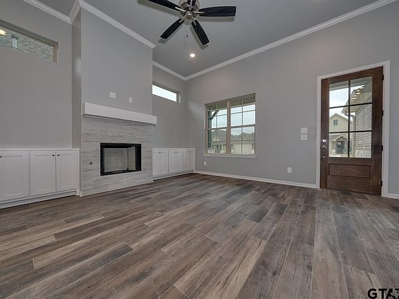 Brand new construction in a quiet 55+ community in south Tyler. Welcome home to Preston Ridge! This home offers an open floorplan with a chefs kitchen featuring granite countertops, custom cabinets, stainless steel appliances, plus an island for extra prep space and a great place to gather. The easy to maintain vinyl flooring flows throughout the entire home. Stay cozy in the cooler months with a gas fireplace which is the centerpiece of your living area. The owners suite is spacious with an attached bath featuring a walk in shower, double vanities and a walk in closet. Up at the front of the home are two guest rooms that share a full bath. This is perfect space for guests when they come into town and still have room for a home office or hobby room. As a bonus, yard maintenance is included in Preston Ridge! The neighborhood also has streetlights and will have two gated entrances. Neighborhood will also feature a clubhouse perfect for small gatherings and a mail room.