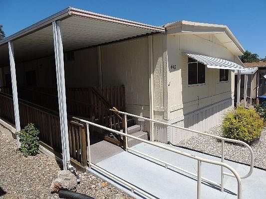 The Redwoods 55+ Active Adult community conveniently located near all amenities and Bethel. Split floor plan with master at one end & 2 bedrooms at the other centered by kitchen, dining, Laundry room just off the vaulted great room. Enjoy easy access custom wheel chair ramp at front entry. Freshly painted, new flooring, carpets, windows. Refrigerator, washer & dryer incl., fenced yard.HOA $484.37
