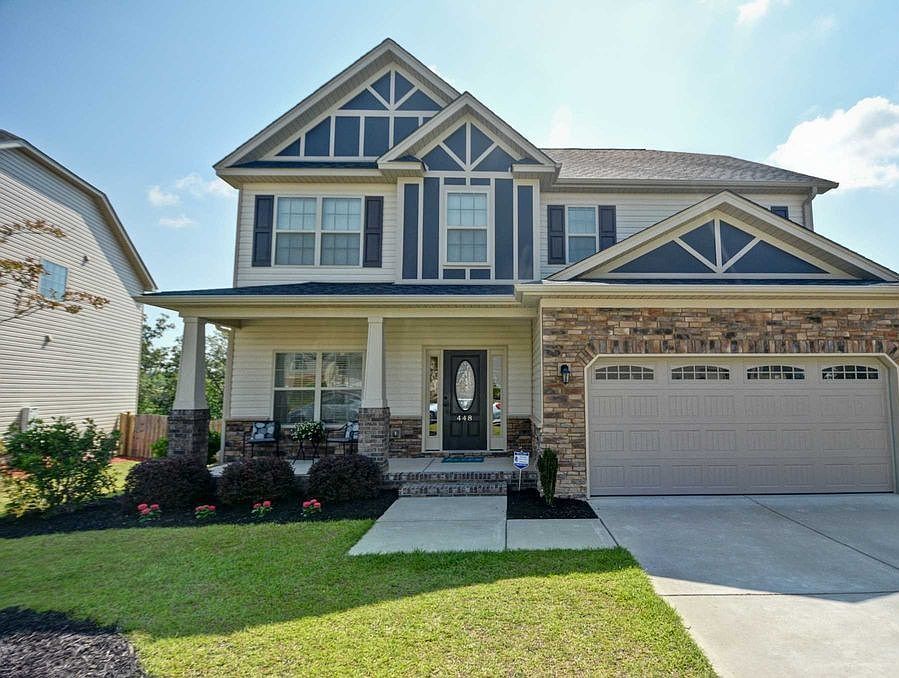 Located within close proximity to shopping and dining at the Village at Sandhills, as well as area schools, this lightly lived in 3 bed, 2.5 bath home features; a large open floor plan, with a formal living room, family room and kitchen; a spacious family room with wide plank hardwood floors and great architectural features such as arches and columns; a spacious dining area with access to the covered back deck; a lovely kitchen with subway tile backsplash, granite counters, dark cabinets and stainless steel appliances. The huge master suite features a tray ceiling, sitting area (in use as a home gym), and a private en suite with a soaking tub, dual vanity, separate shower and a custom built walk in closet. Come make this home yours today!