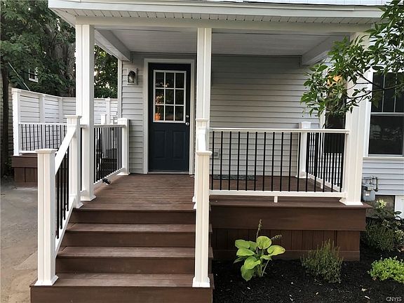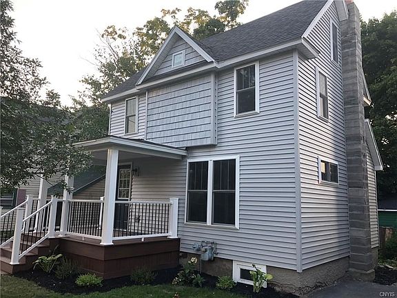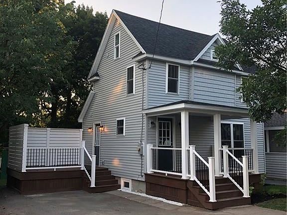 This charming two bedroom, 1 1/2 bath home has been remodeled from top to bottom, inside and out. From the new beautiful composite front porch, walk into the open kitchen/dining/living room, you will find beautiful quartz counter tops, stainless steel appliances, an abundance of cabinets and first floor laundry. Off the kitchen you will find a large composite private deck which has plenty of room for an umbrella table, chairs and grill. Upstairs you will find two bedrooms, a large closet, custom built sliding barn doors and a beautiful full bath with tiled shower, ceramic tile floors and amazing fixtures. The basement is freshly painted and dry. This energy star home has spray foam insulation in the attic, lifetime Owens Corning duration shingles, new windows and siding, new 200 amp electrical entrance, new central air conditioning and HVAC and is maintenance free. Walking distance to the park, close to schools and downtown, this home is a must see! Call me for a showing today!