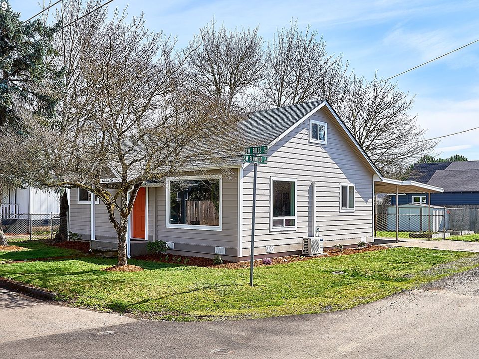 2 bedrooms on main level with 2 additional rooms upstairs. Home is totally remodeled. New roof, windows, siding, int/ext paint, kitchen cabinets, appliances, bathroom and flooring. Fenced backyard. Tool shed. New ductless heat pump for both heat and A/C. Just a few blocks from the library and city park.