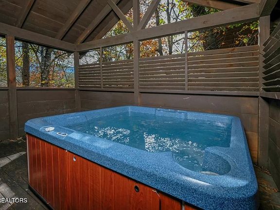 Step outside onto the covered rear deck to breathe in the crisp mountain air, take in the gentle rustle of the trees, and enjoy peaceful mornings in the rocking chairs while mist lifts off the ridges. As evening falls, sink into the bubbling hot tub beneath the stars and let every worry melt away.