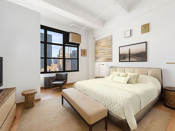 This fully reimagined Pre-War Hudson Yards loft blends authentic industrial drama with modern luxury across 1,840 square feet. Towering 12-foot concrete ceilings and sweeping north- and west-facing exposures showcase iconic skyline and Hudson River vistas-your quintessential New York backdrop.